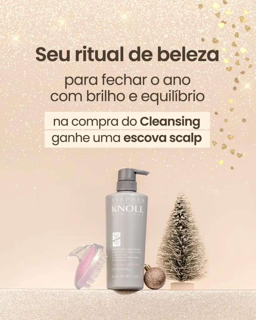 Para deixar esse ritual ainda mais completo, neste Natal, quem adquire o Cleansing Conditioner Stephen Knoll ganha uma escova de scalp exclusiva SKNY. Um acessório pensado para elevar a experiência, estimulando o couro cabeludo e tornando cada lavagem um momento de autocuidado consciente.